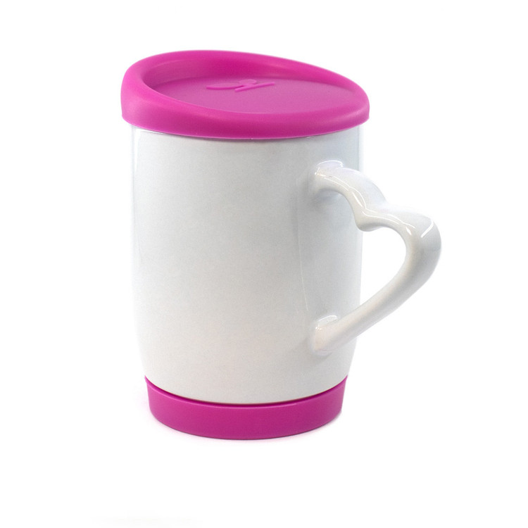 ماگ (لیوان) صورتی دسته قلبی درب سیلیکونی با چاپ دلخواه شما
