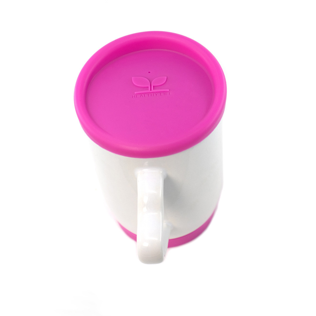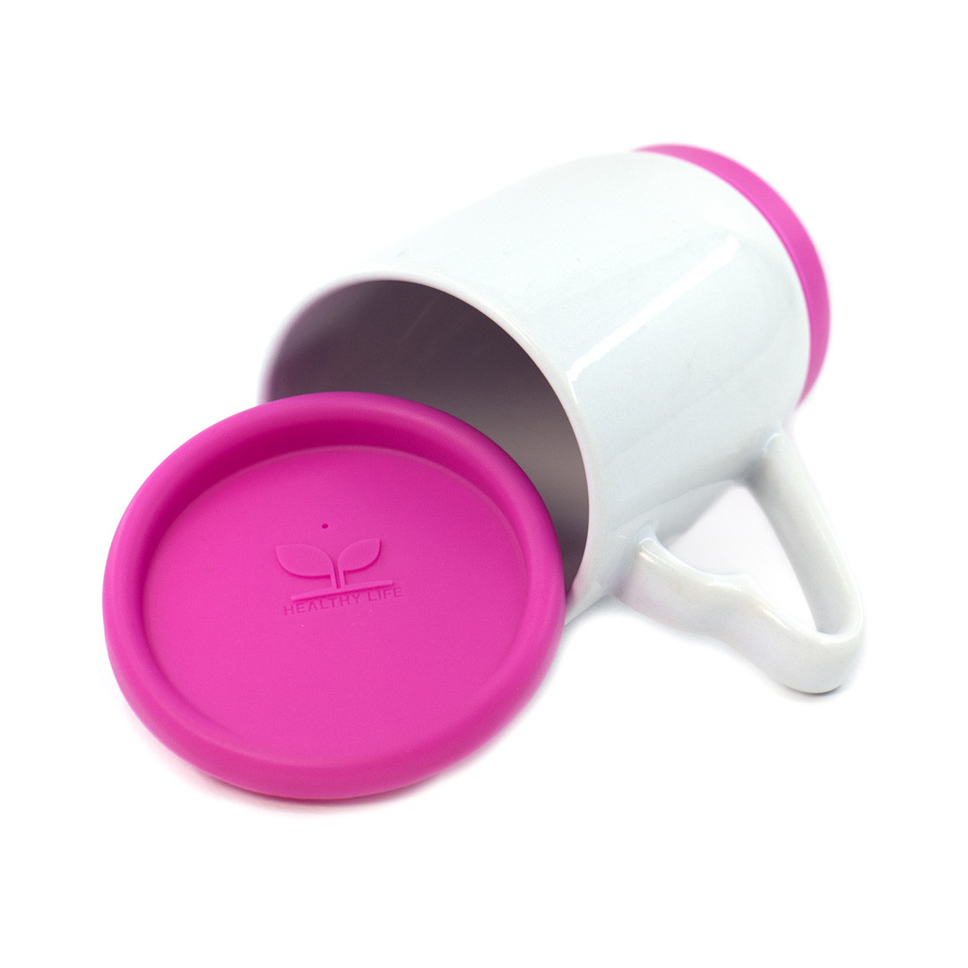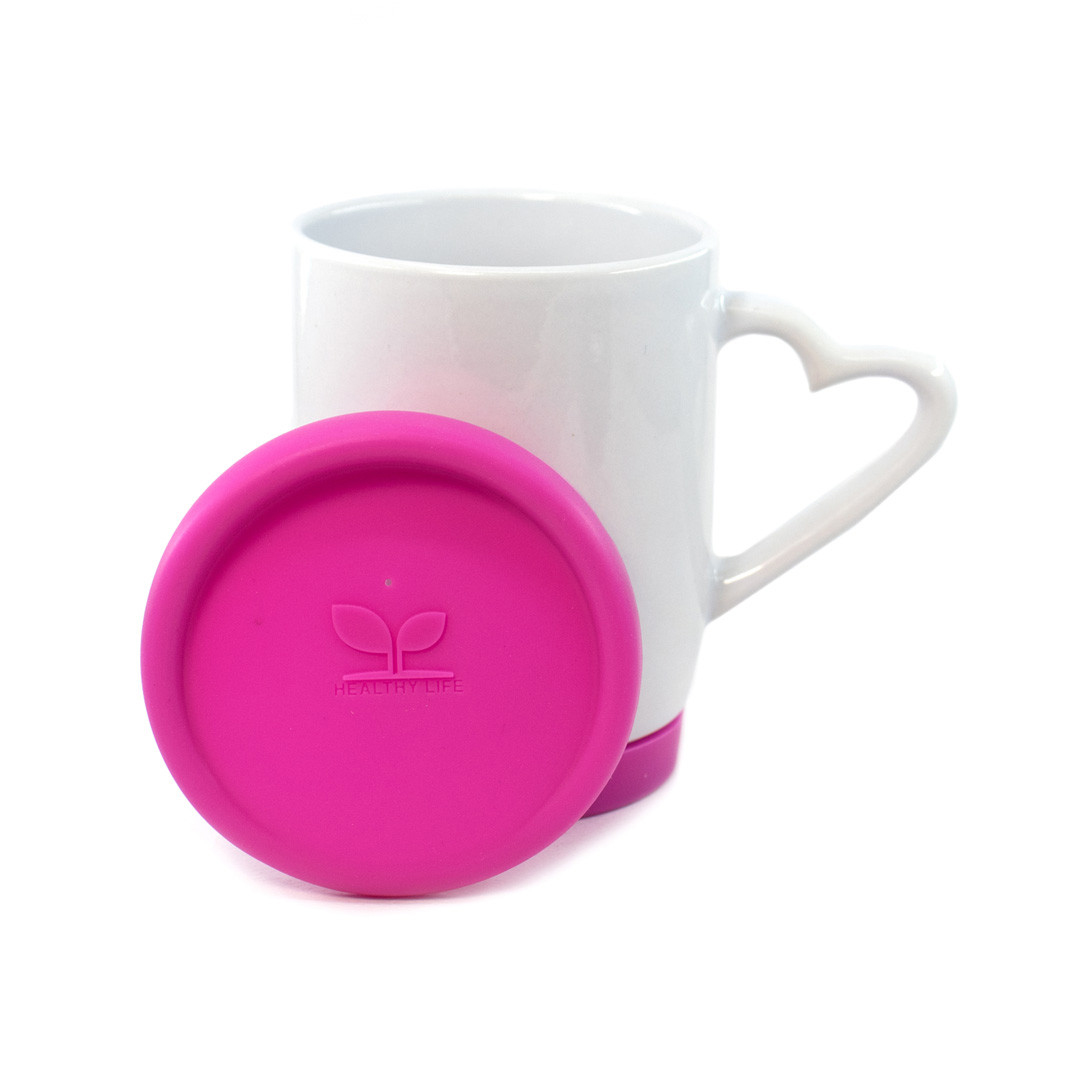 ماگ (لیوان) صورتی دسته قلبی درب سیلیکونی با چاپ دلخواه شما