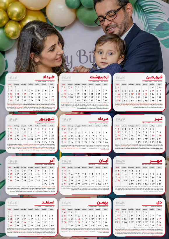 تقویم دیواری خانوادگی با عکس دلخواه شما یک تقویم با جنس بسیار مقاوم