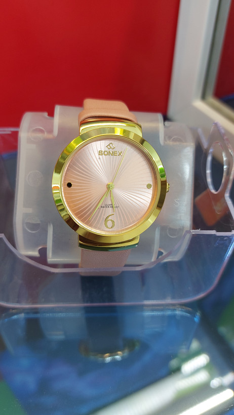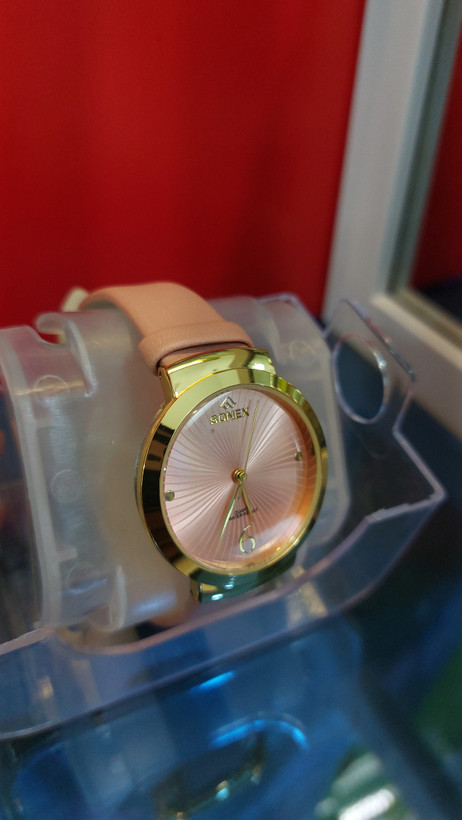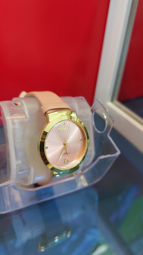 یک ساعت مچی بسیاز زیبا جنس رنگ پاستیلی صورتی جنس بند ساعت چرم مصنوعی