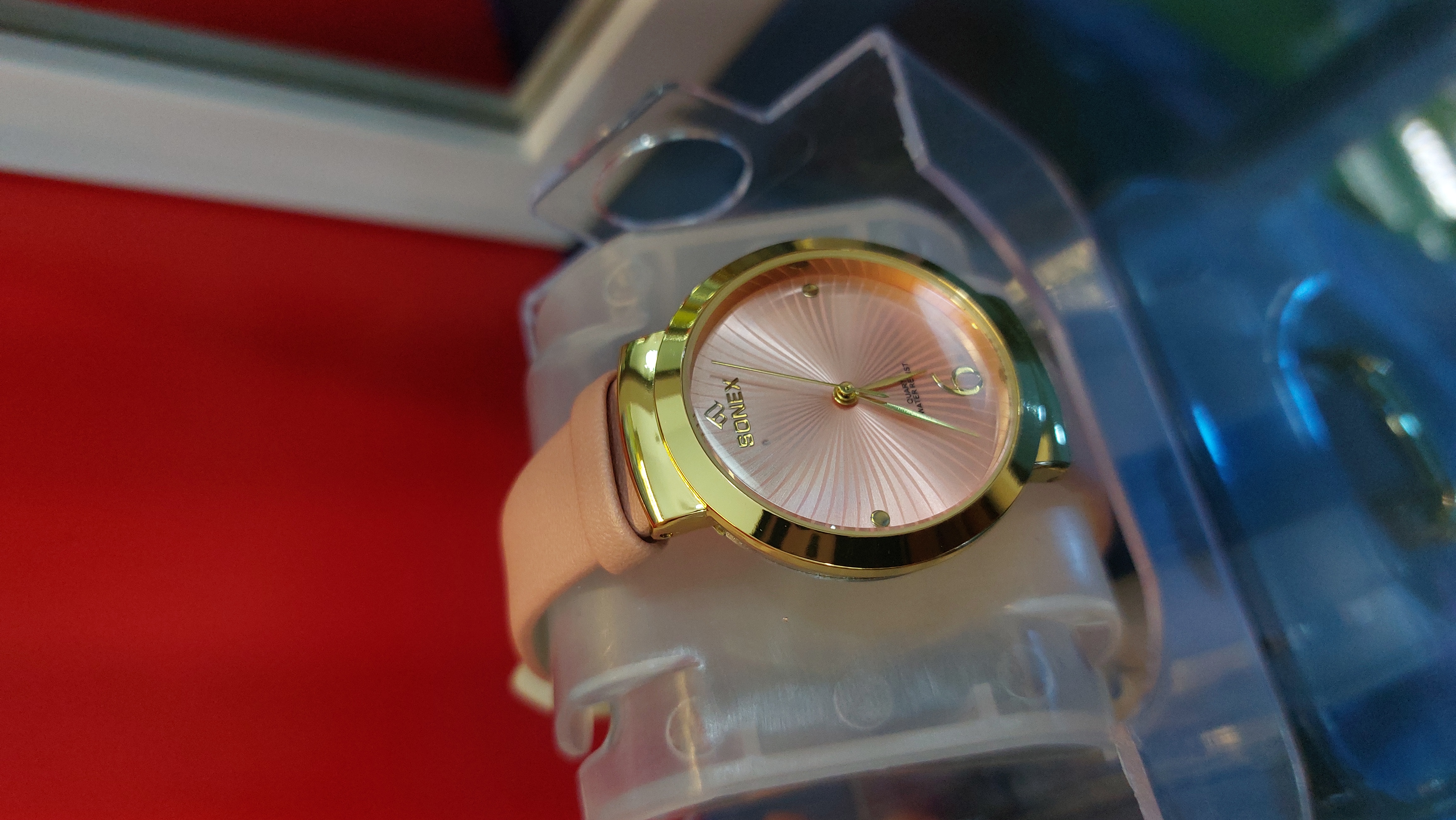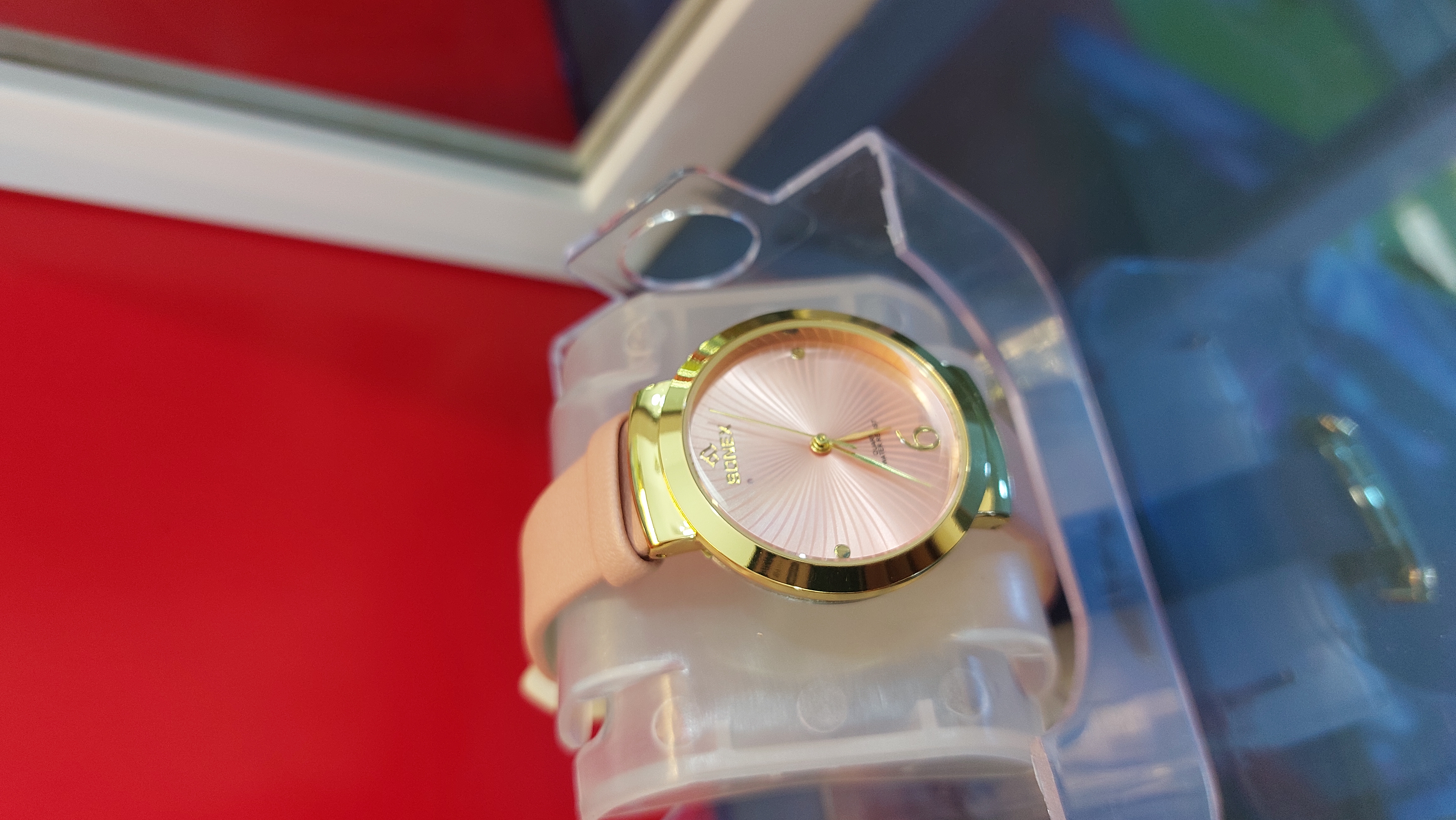 یک ساعت مچی بسیاز زیبا جنس رنگ پاستیلی صورتی جنس بند ساعت چرم مصنوعی
